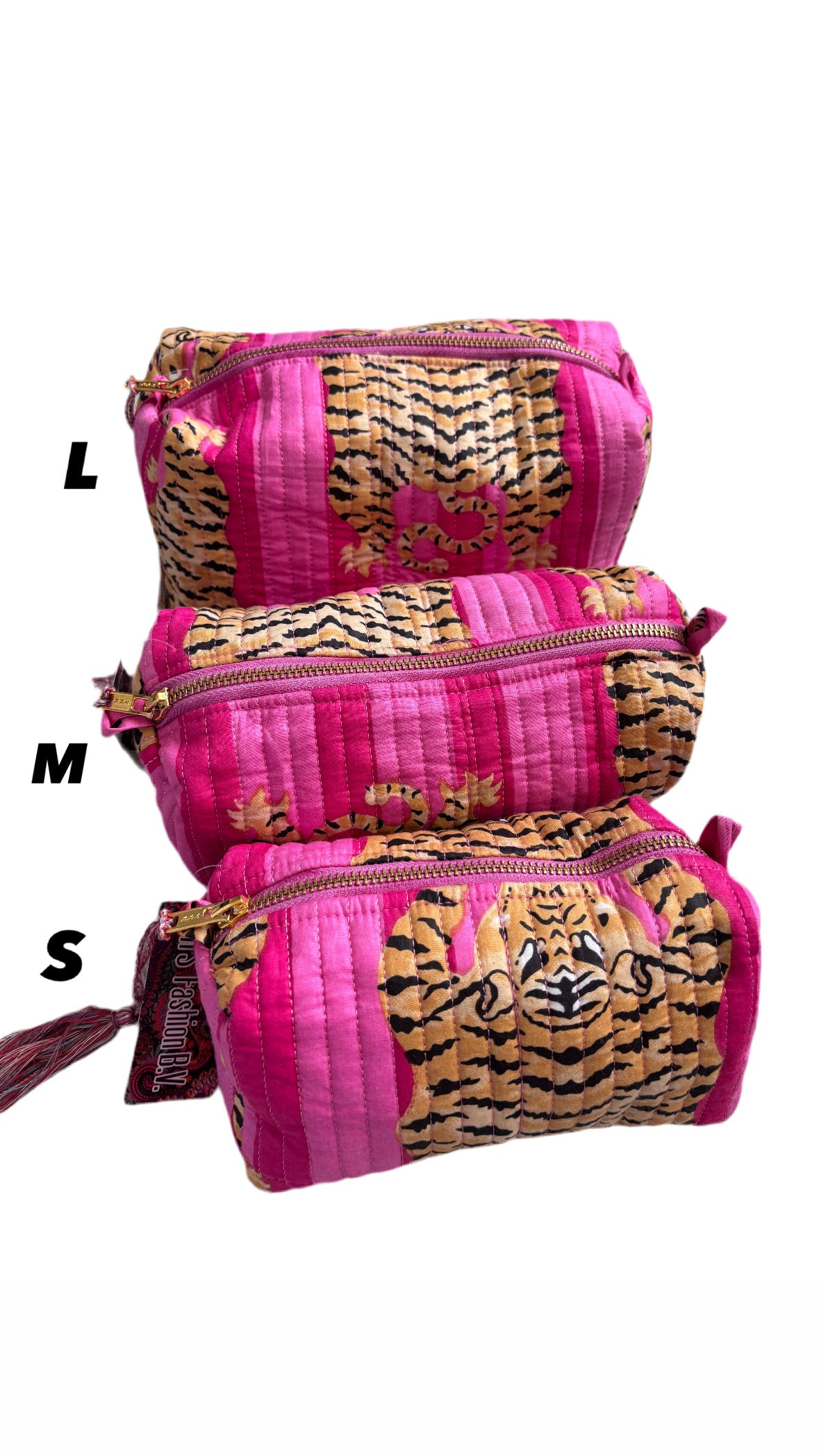Deze tijgerroze toilettas is dé perfecte mix van stijl en functionaliteit. Met haar opvallende panterprint en zachte roze kleur valt ze direct op in je badkamer, koffer of sporttas.