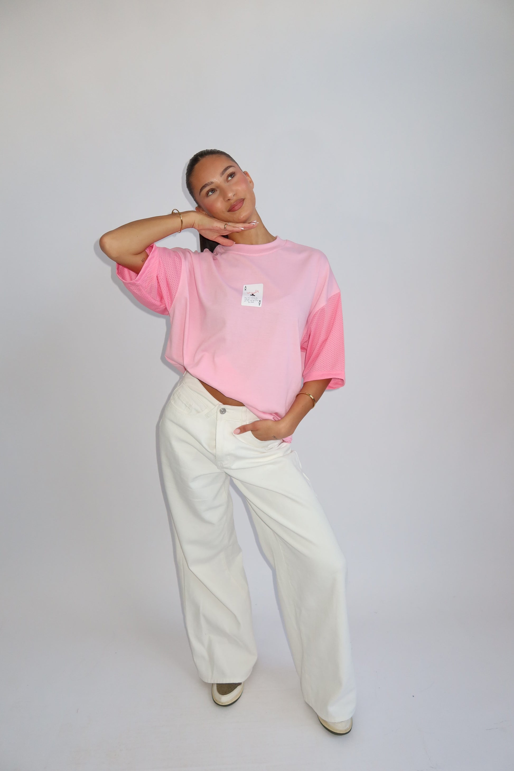 Priority oversized tee with jersey sleeves – pink